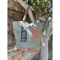 | LUNA beach bag with leather base. |